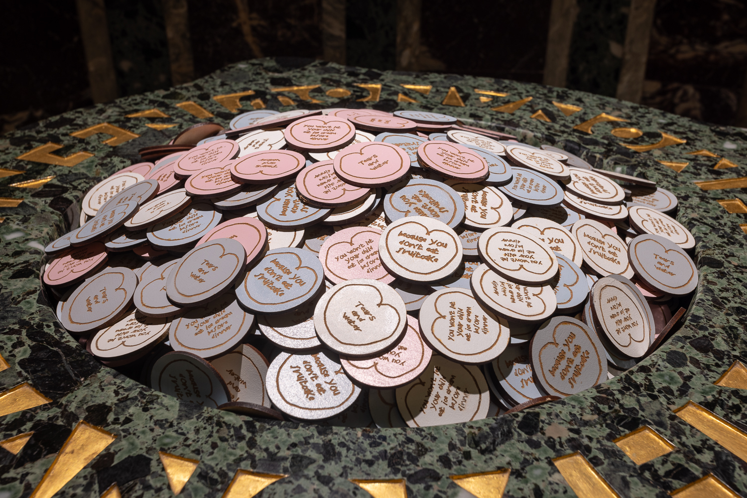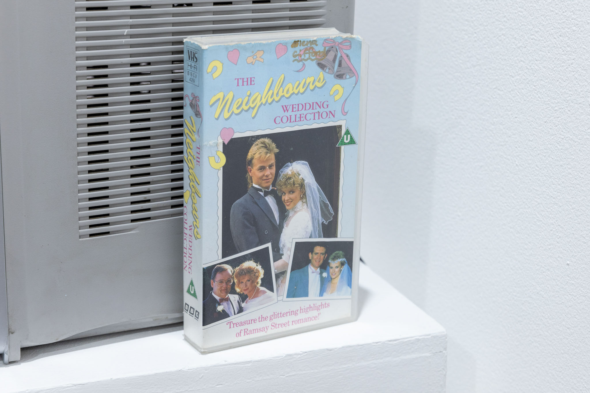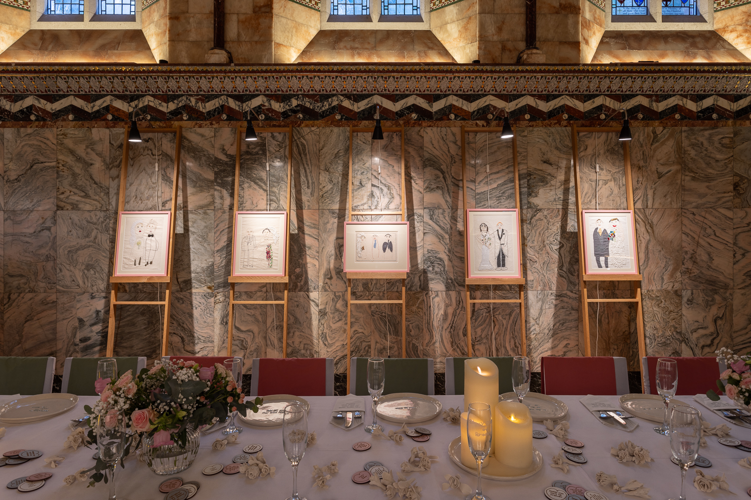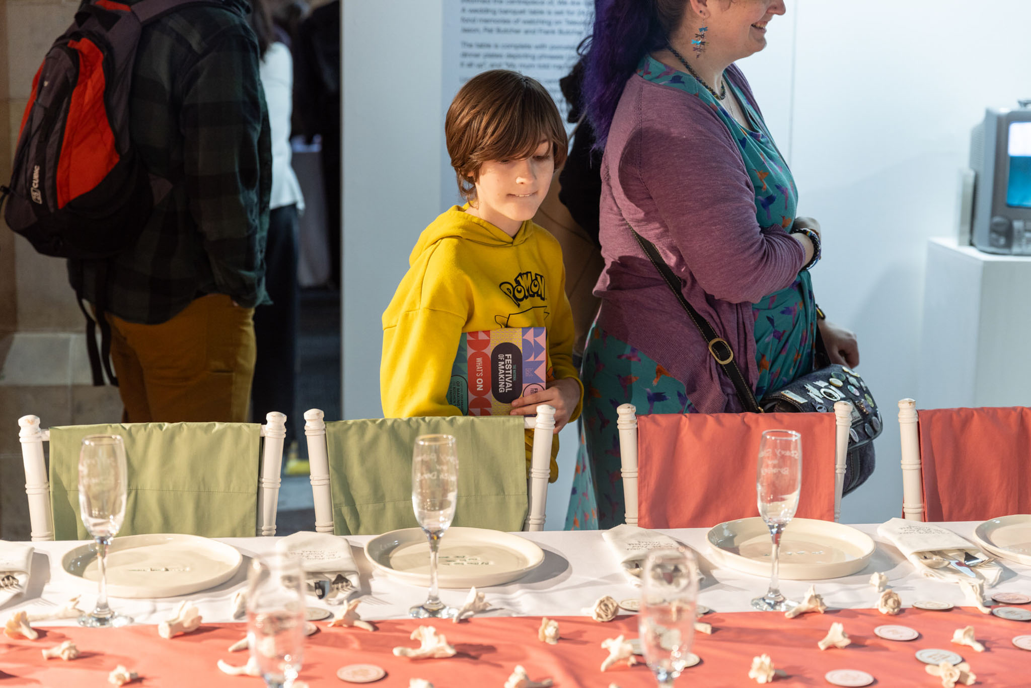Split into three parts, one area of the exhibition focused on ‘births’, with a list of the names of people he had interacted with, the year they were born, and an iconic song released that year – specific knowledge Lindezey holds. In ‘marriages’, a huge wedding table was set for 24 iconic guests, inspired by Lindezey’s fond memories of watching TV.
