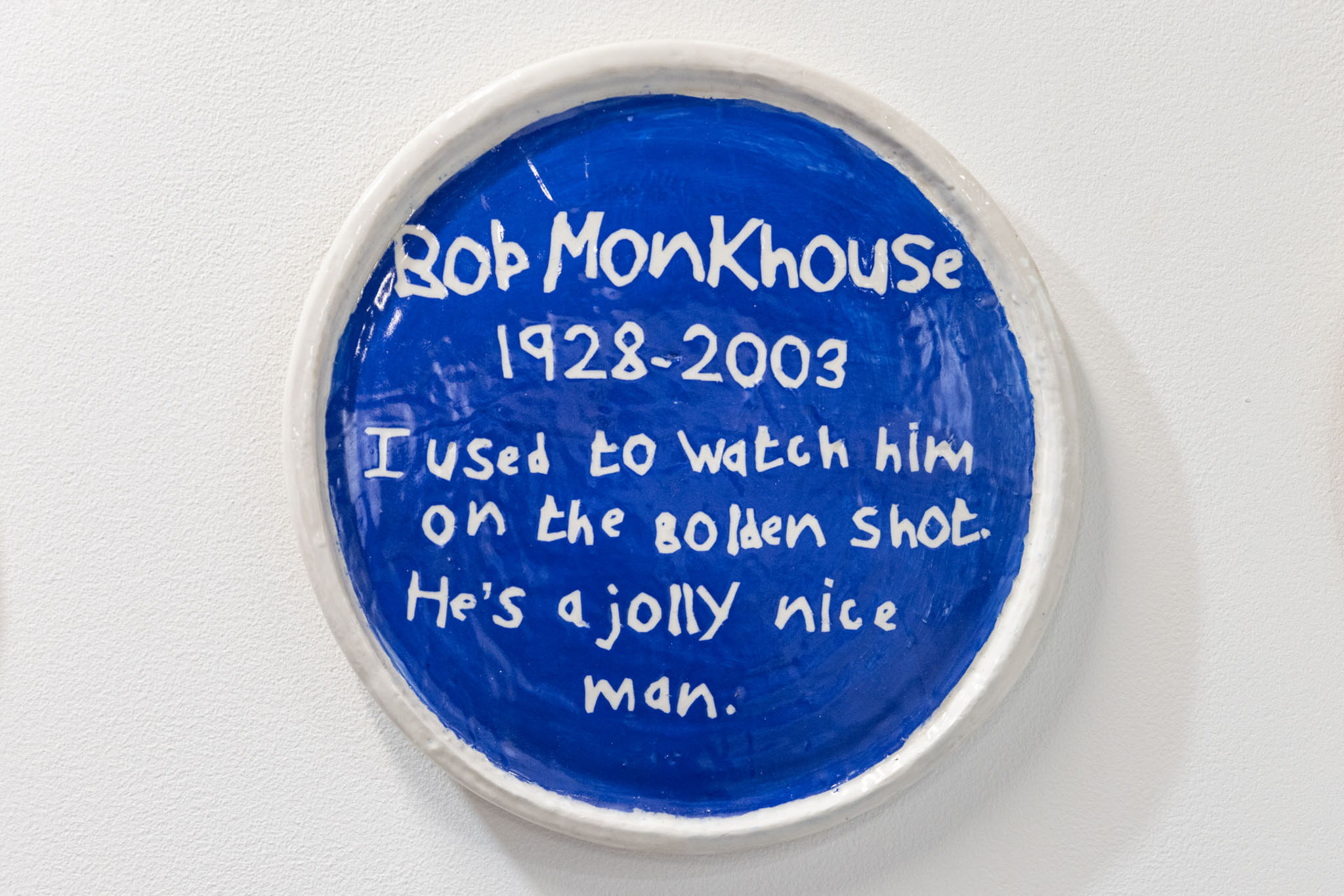Finally, in a space representing the experience of a funeral ceremony, approximately 60 of the artist’s iconic blue plaques could be found in a reflective space, whilst in stark contrast to the rest of the show, the pieces remained witty and engaging.