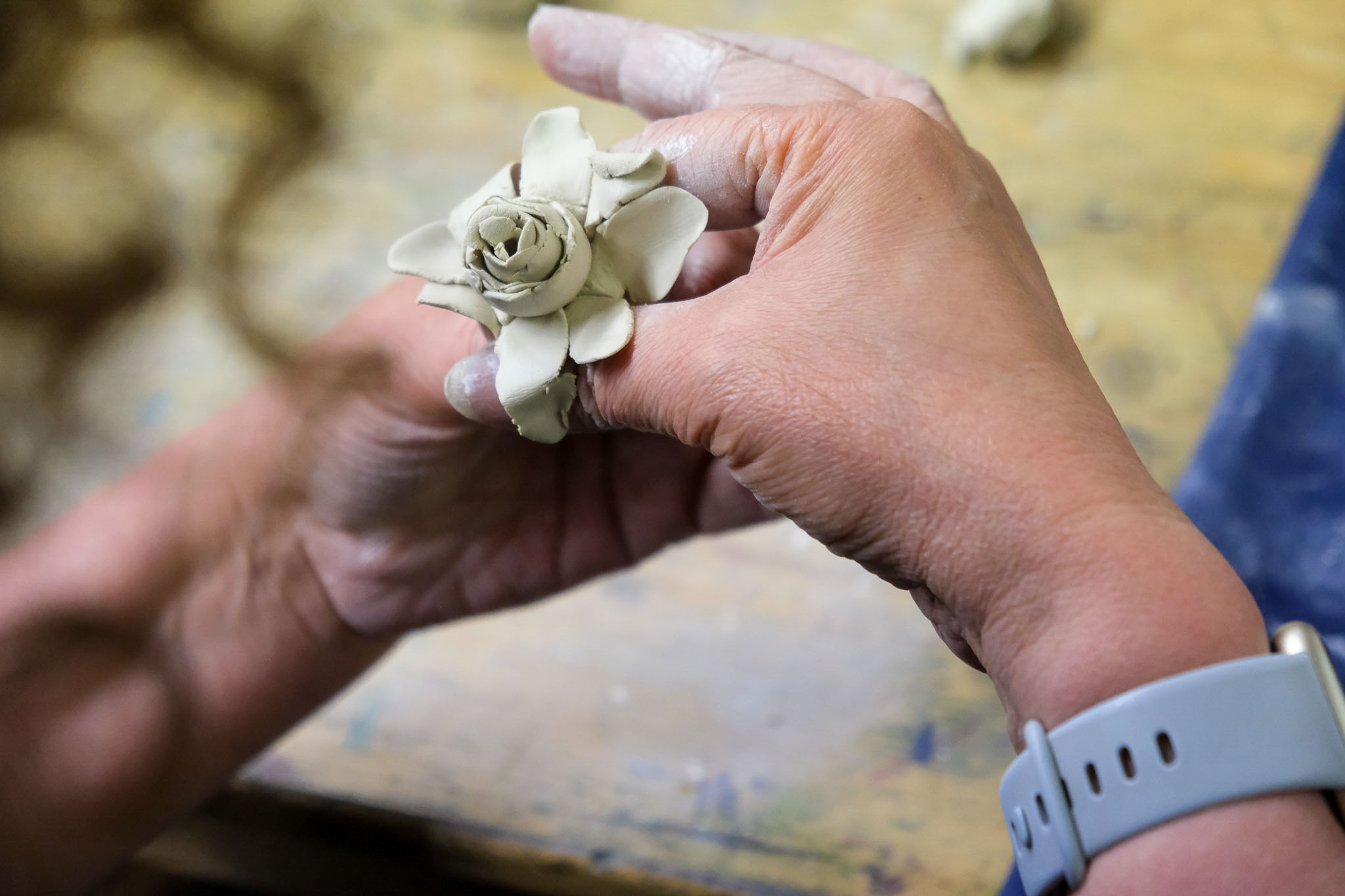 With thanks to: Jacenta Sellars, Ali Ellis, Laura Nathan and Louisa Hammond from Venture Arts; Clay Studios for donating studio and kiln hire; Mollies contemporary art collection for loaning 8 blue plaques; Wedgewood Ceramics for donating bisque-fired plates; Torrecid for donating glazes and everyone who took part in porcelain flower making workshops.