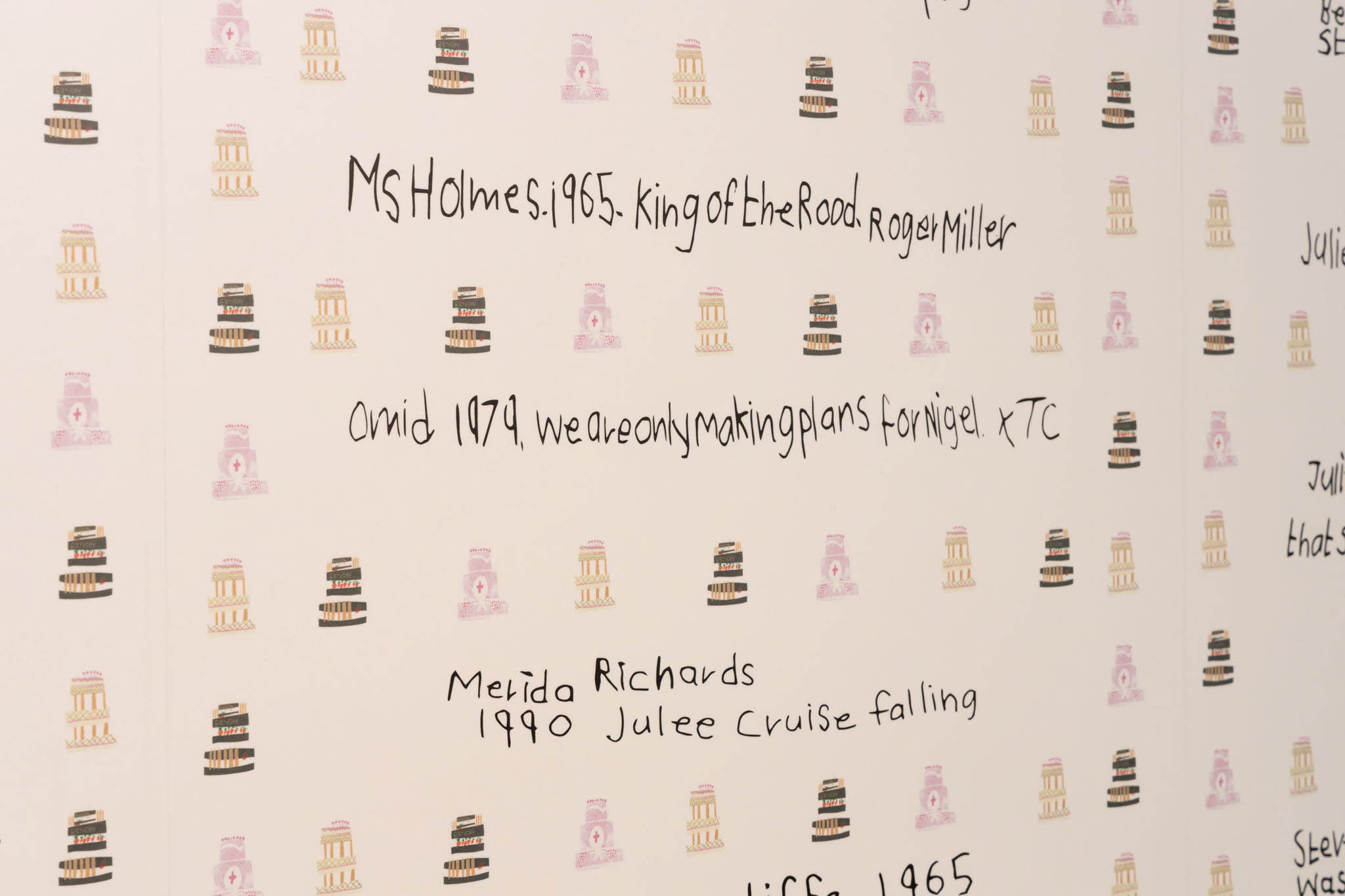 If you were fortunate enough to meet Horace, he might have asked for your birthdate and shared the number one song from that day. These dates were later turned into an illustrated wallpaper, which was featured in his exhibition during the Festival Weekend.