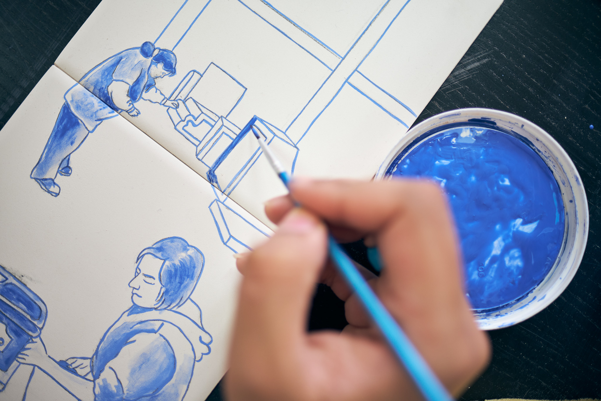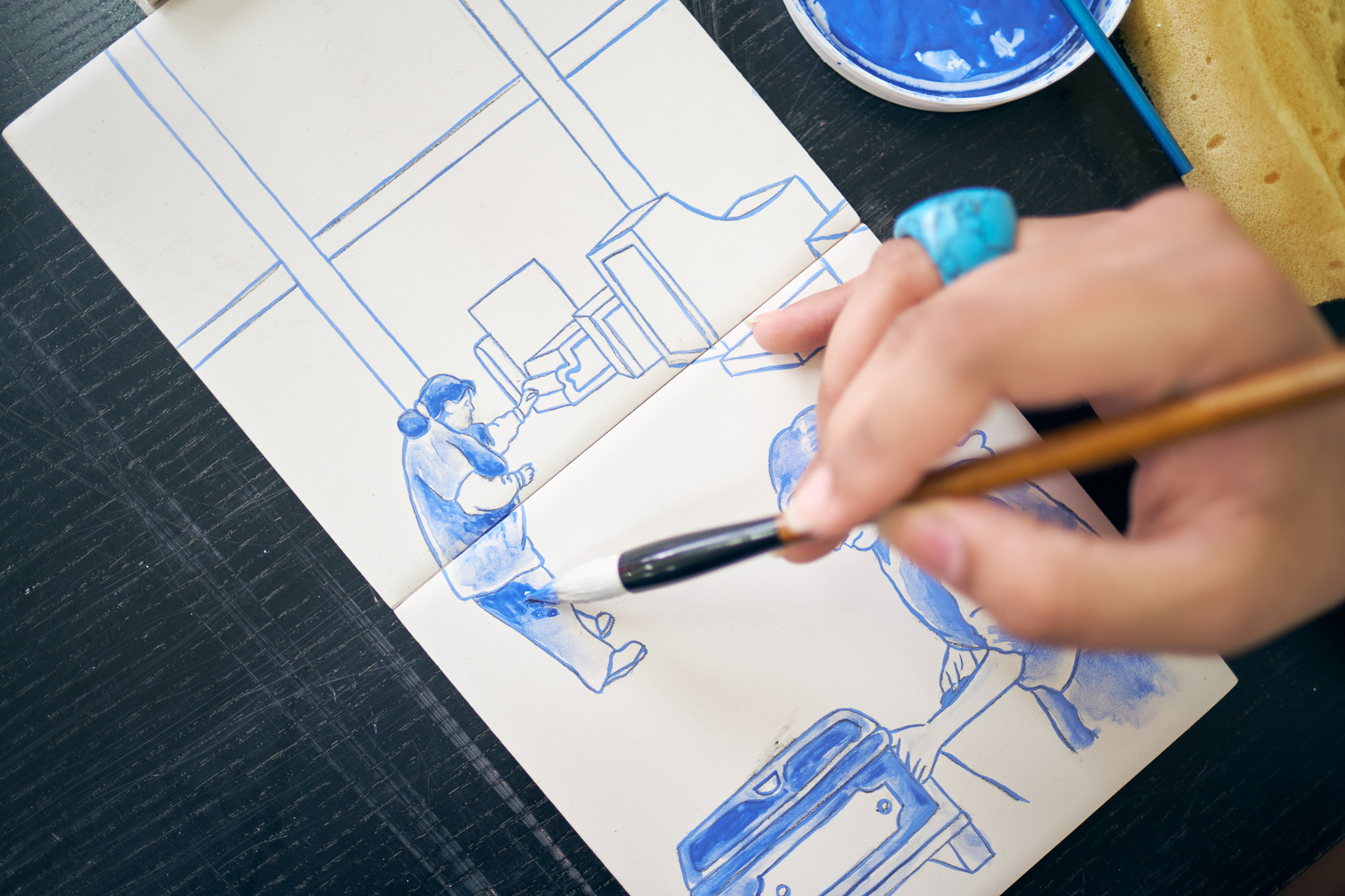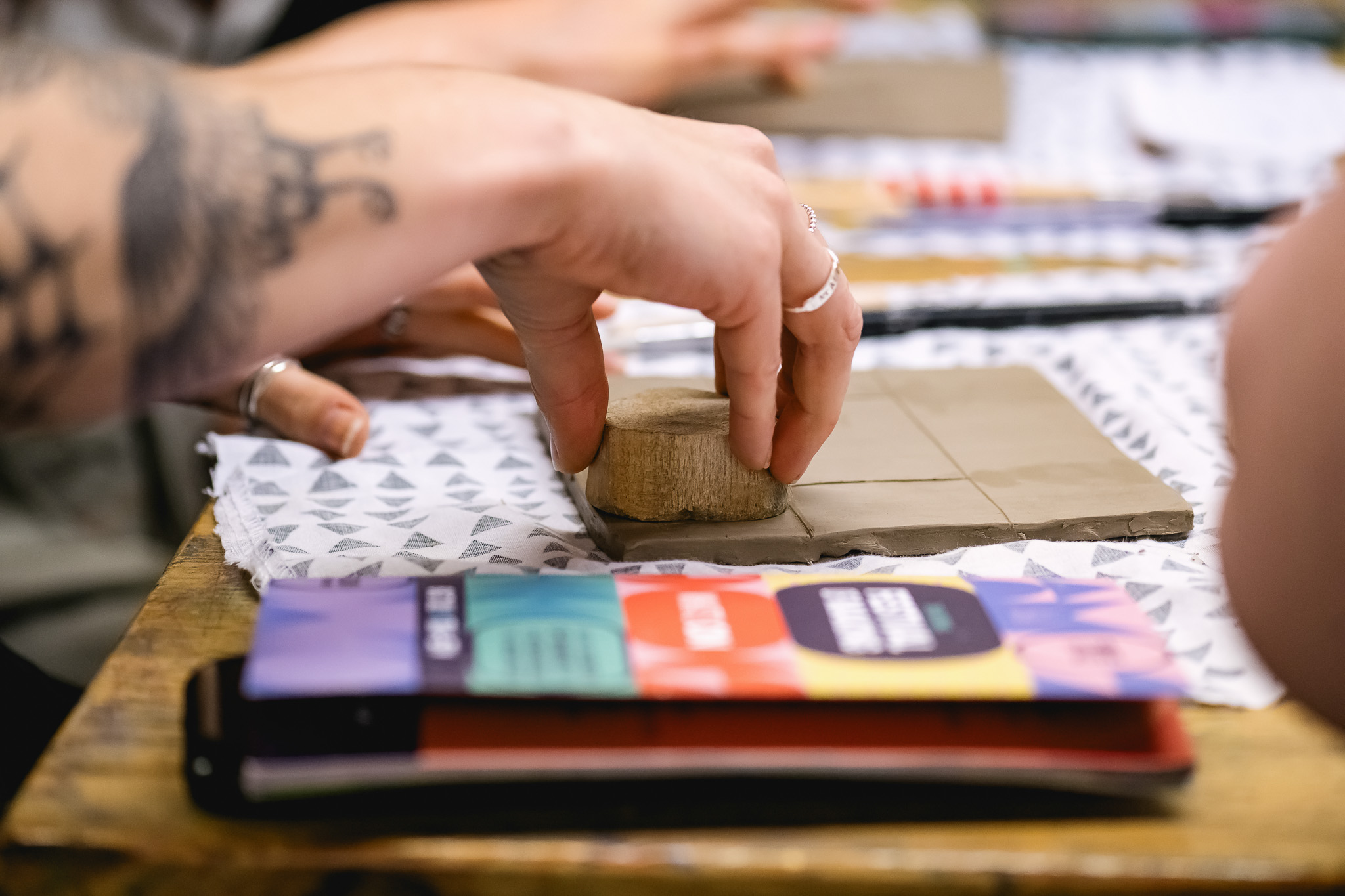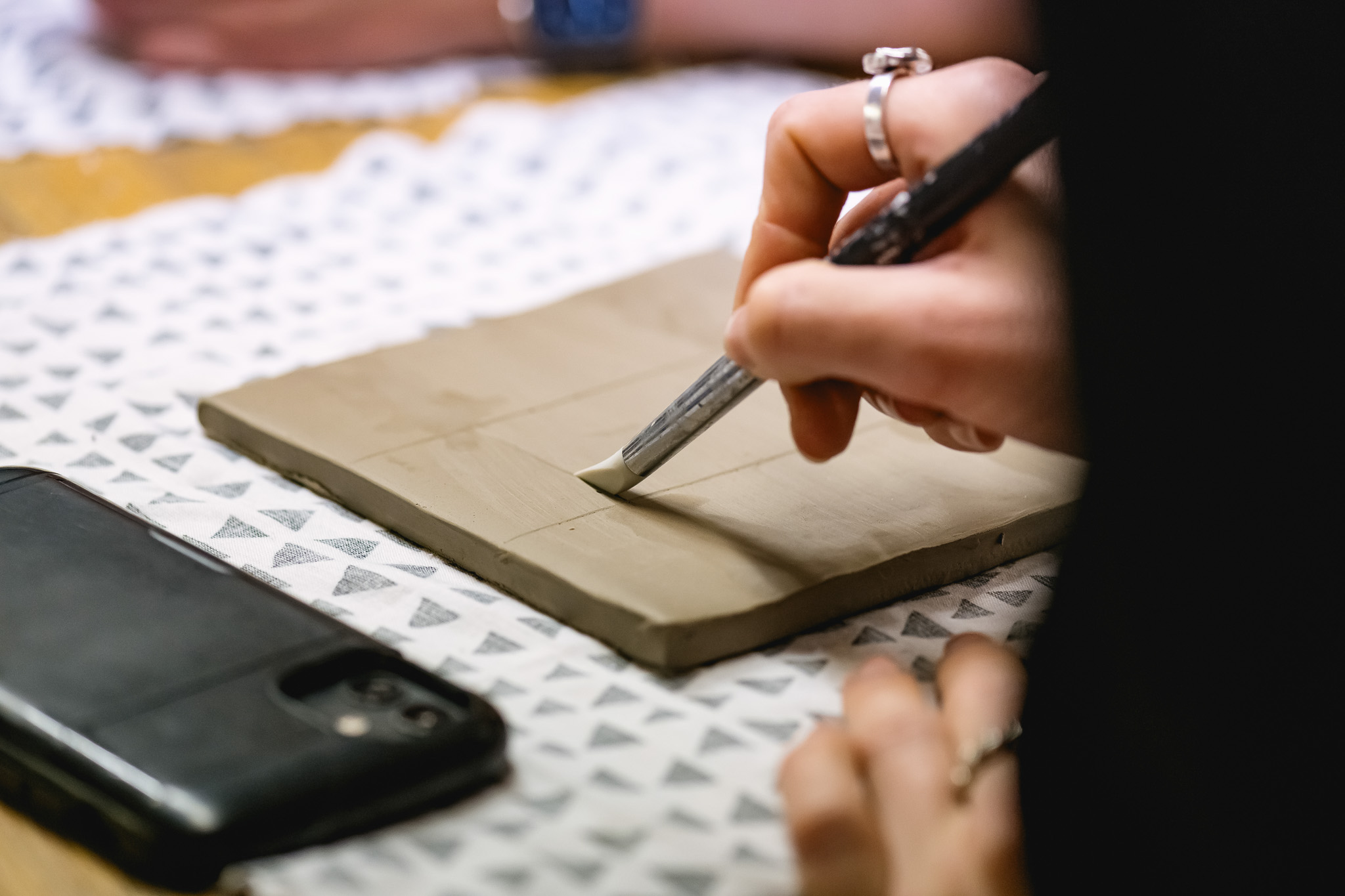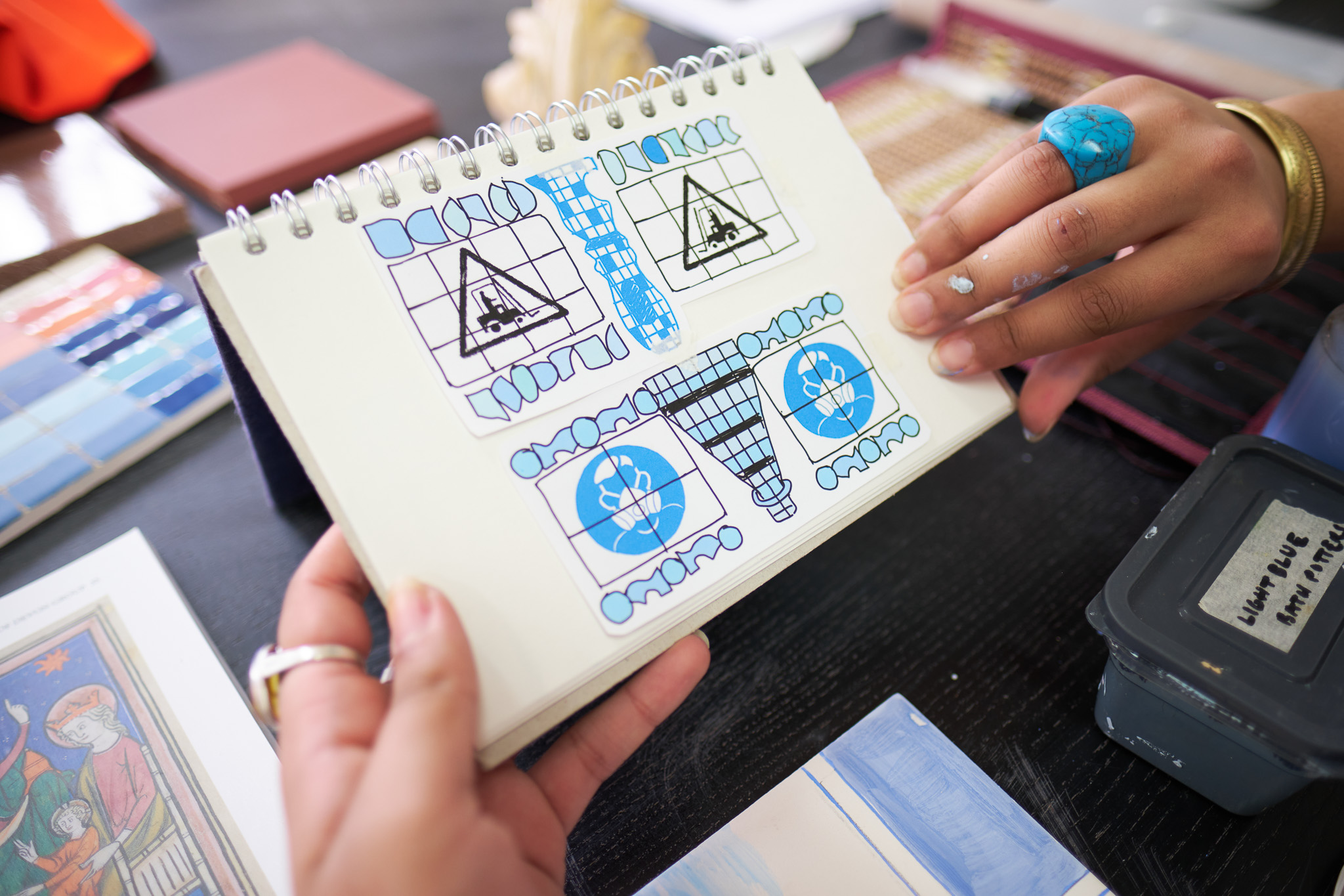 During the workshop, participants were asked to reflect on their daily rituals – whether it’s a morning routine, family tradition, cultural practice, or spiritual ceremony. Nehal then supported participants through the steps of depicting this onto a tile, experimenting with different techniques and styles to convey stories visually.