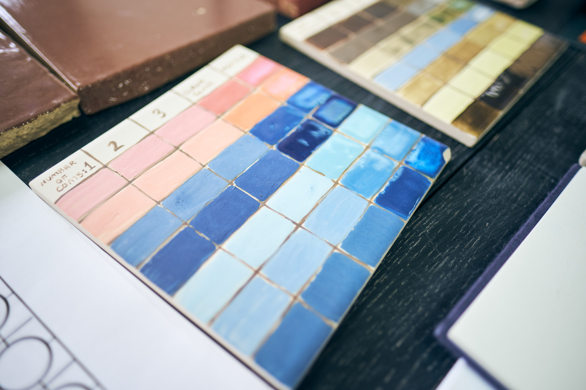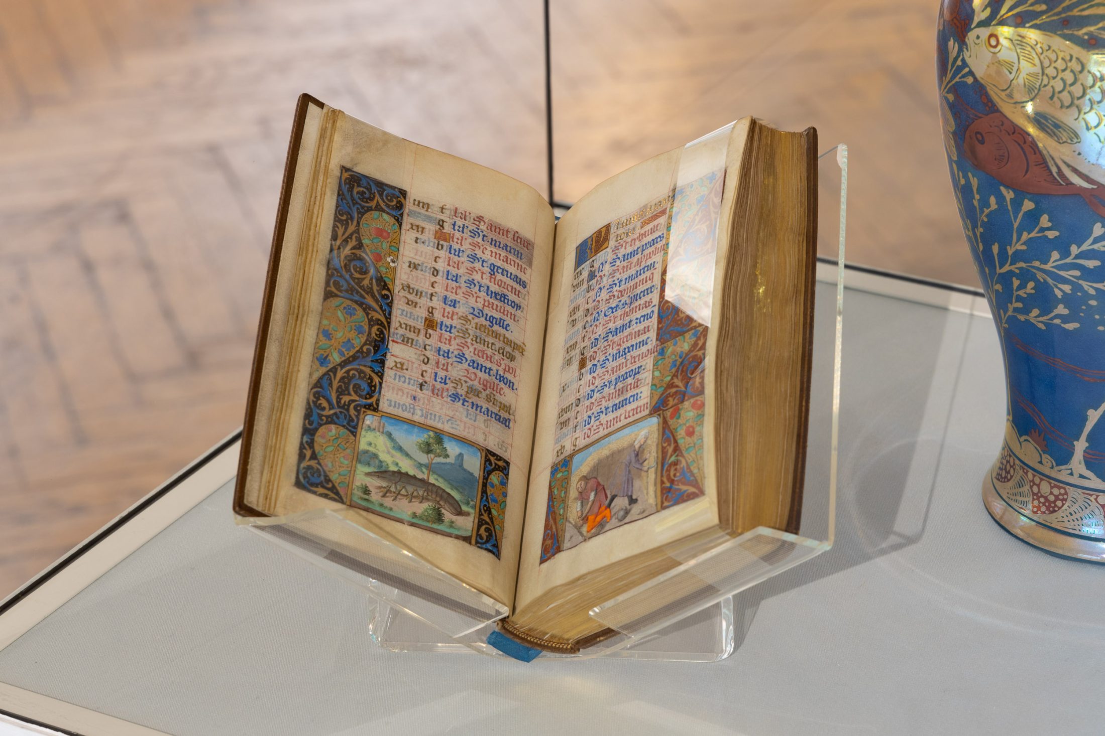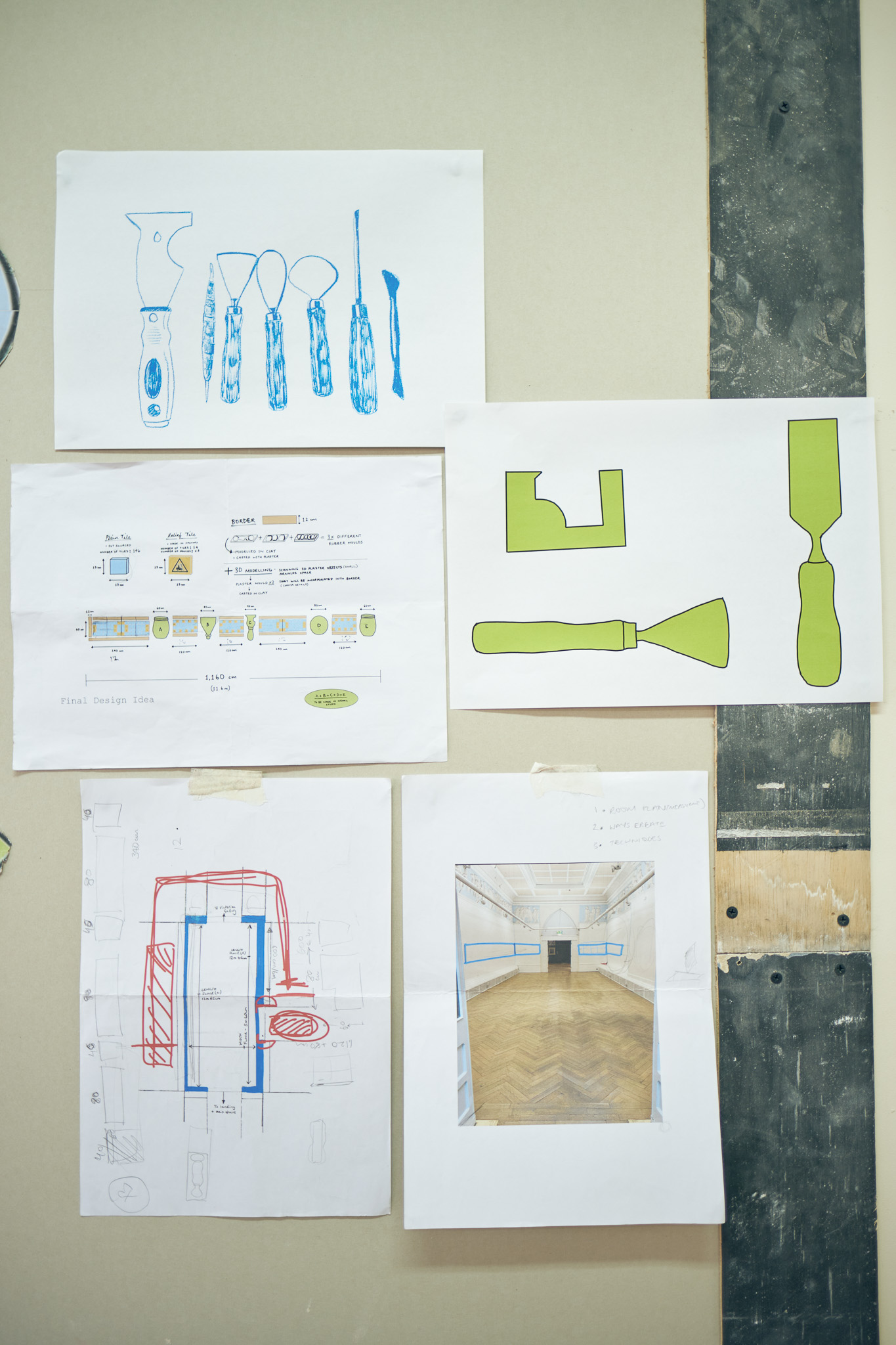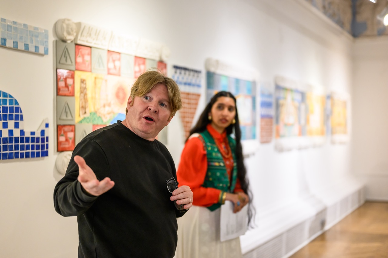 On the opposite wall hang pieces inspired by the factory’s work, mimicking fragments of architectural structures from magnificent buildings. Similarly to the manuscripts held in the museum’s collection, the pieces evoke a sense of historical and cultural importance. They preserve a skill and expertise that both artist and manufacturer believe should be protected. These pieces are displayed in dialogue with objects from the museum’s archives that have inspired the work.