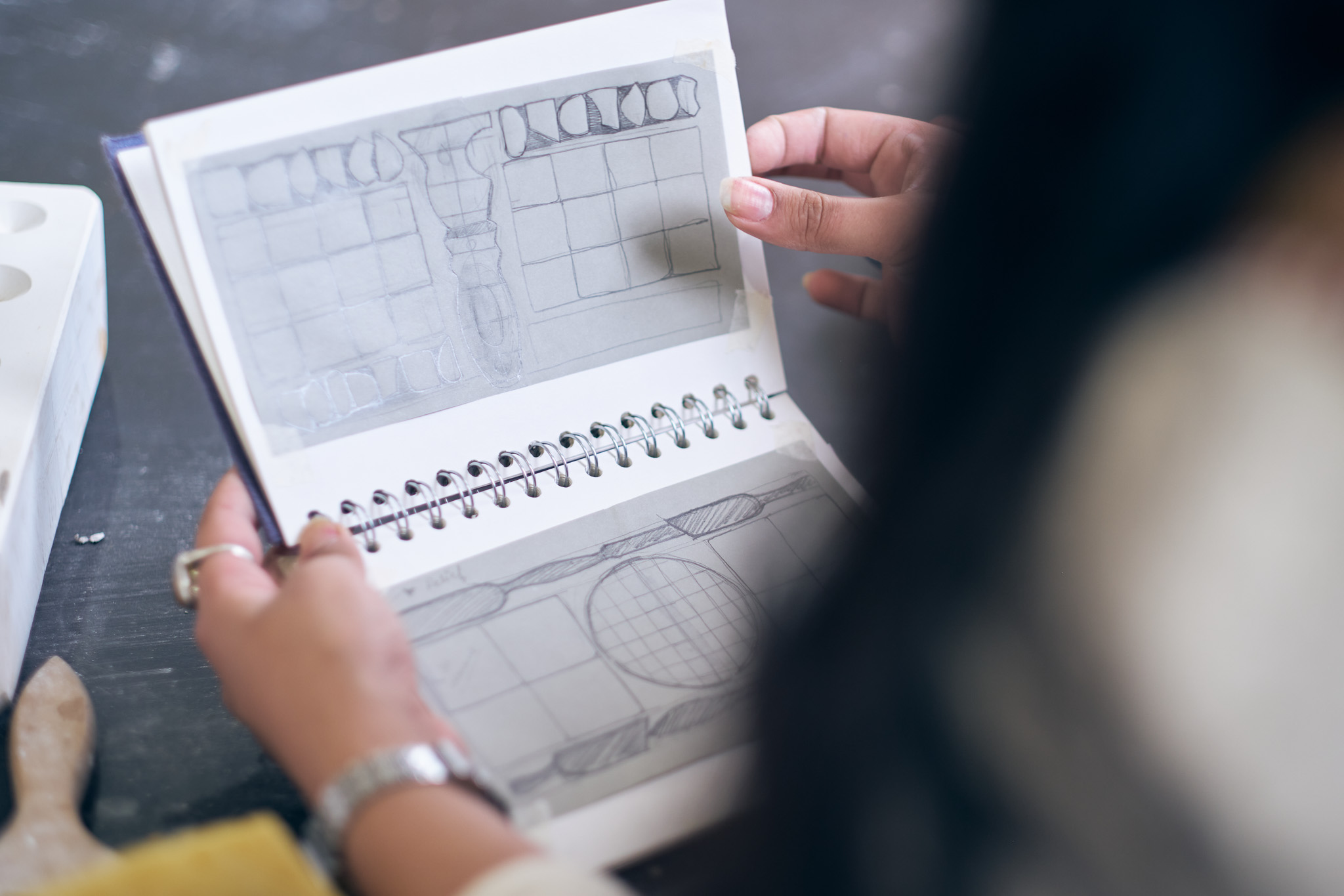 Nehal Aamir began her residency by documenting the shapes, sounds and textures of Darwen Terracotta and Faience, and the intimate relationship the workforce have with their individual practices. The care and order with which each task was undertaken resonated with her. Each next step taken on the factory floor revealed the next stage of the process – everything in its place, everything running smoothly.